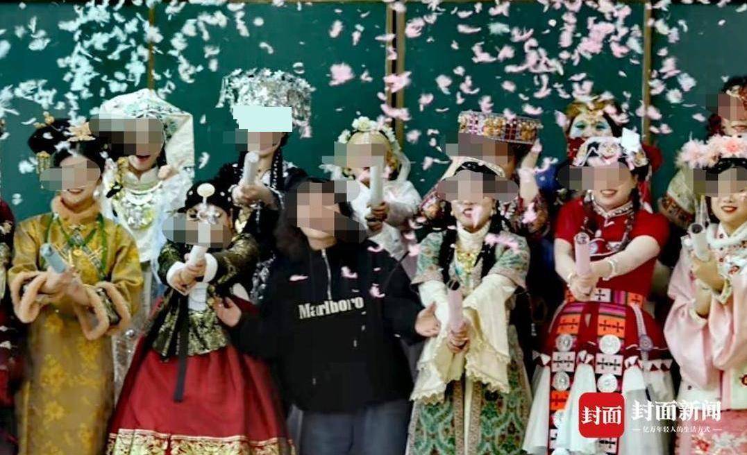 小如(黑色衣服者)与同学们排练后的合影(视频截图)